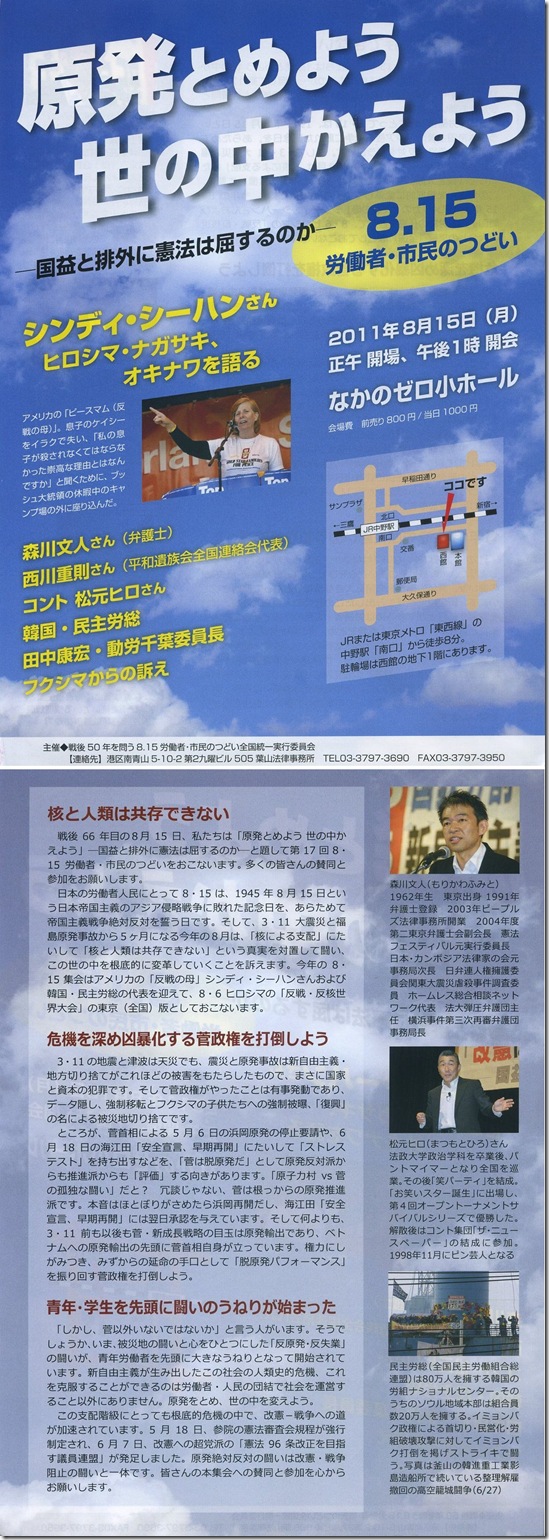 協賛/ふくしま合同労組、茨城県地域連帯労組、福島県労組交流センター、茨城県労組交流センター、東日本大震災現地救援対策本部